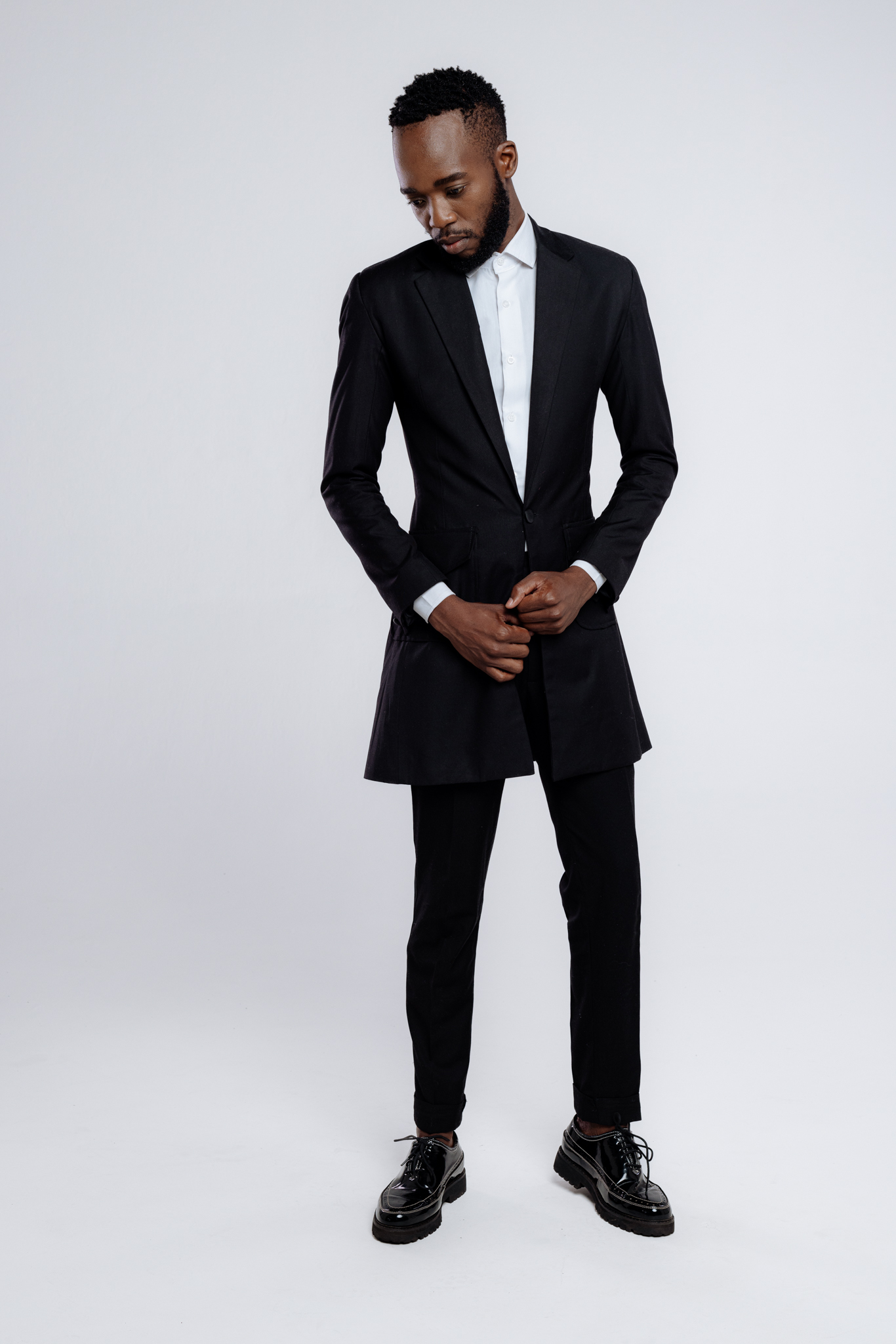 Mens long-jacket slim-fit suit